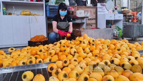 Sau khi thu hoạch hồng và đưa về xưởng thì hồng sẽ được công nhân gọt vỏ. Tuy nhiên, phần cuống của quả hồng sẽ được để lại để treo lên. Tiếp đó, hồng đã gọt vỏ sẽ được đưa vào sấy trong lò khoảng 3 tiếng ở nhiệt độ 50 - 60 độ C. Ảnh: Văn Long.