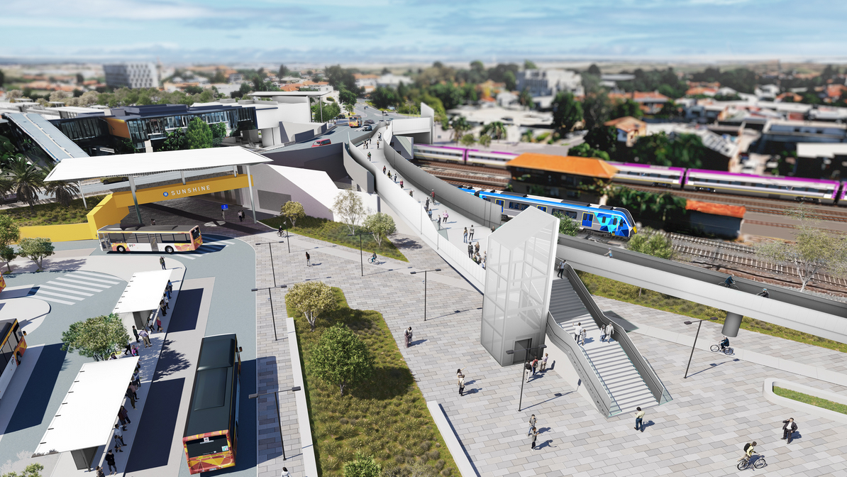 Bộ trưởng Cơ sở Hạ tầng liên bang Catherine King và Giám đốc đặc trách Giao thông công cộng bang Victoria Gabrielle Williams đã công bố thiết kế ban đầu của nhà ga trung chuyển Sunshine Station và xác nhận công trình đã bắt đầu.