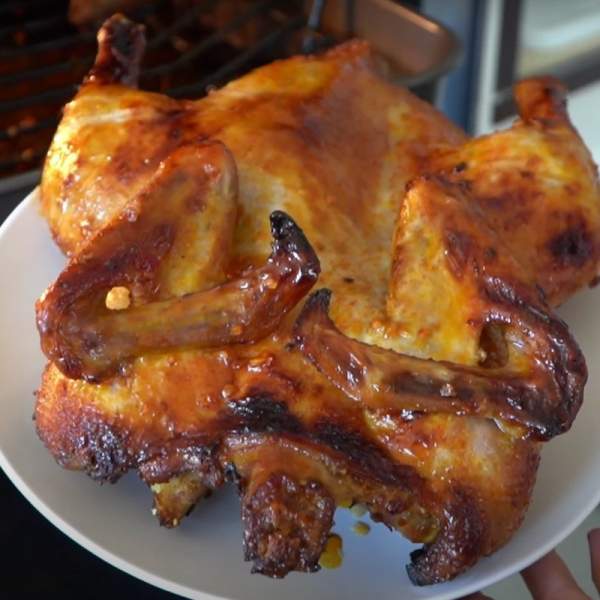 Trong lúc đợi vịt ngấm gia vị, bạn làm nóng lò nướng trong 10 phút ở nhiệt độ 180 độ C. Đợi vịt ngấm đều thì cho vịt vào khay nướng trong 30 phút ở nhiệt độ 200 độ C.