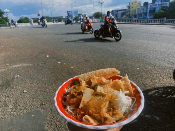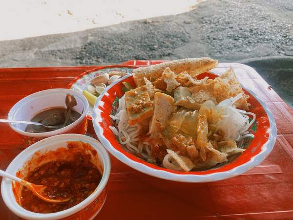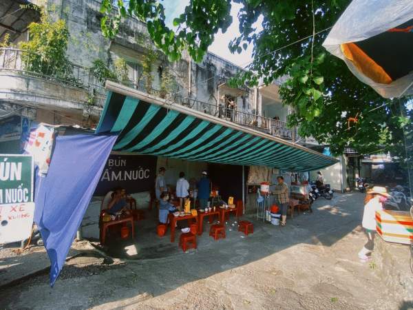 Quán không có tên cụ thể mà chỉ được mệ Lành để tên “bún giấm nuốc”. Đến quán từ khung giờ 13h30 đến 19h tối là có thể thưởng thức tô bún giấm nuốc độc đáo mà chỉ riêng vùng cố đô mới có.