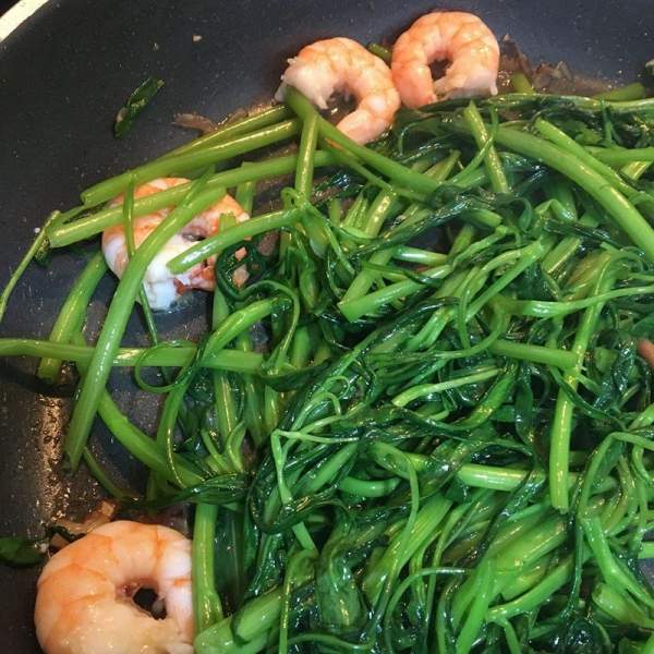 2. Rau muống xào tôm tươi