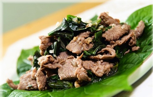 Bạn cho 3 thìa dầu ăn vào chảo đun nóng, rồi cho nốt 1/2 tỏi băm vào phi thơm rồi trút thịt trâu vào xào với lửa lớn đến khi thịt trâu chín tái, thì cho lá lốt vào xào chung vài phút là được. (Lưu ý: Thịt trâu, thịt bò bạn phải xào lửa to ăn mới ngon, thịt mới ngọt, không nên xào lửa liu riu sẽ bị dai, không ngon).
