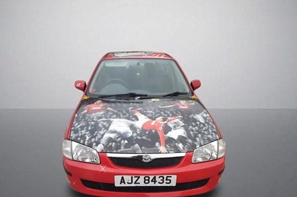 Chiếc Mazda này sẽ chẳng ai thèm mua nếu người ta không phải là fan vô điều kiện của Manchester United. Ngược lại, nếu bạn là fan của CLB này, thì chiếc Mazda 323 không còn là một chiếc xe thông thường, nếu không muốn nói là… hàng phế thải, mà là một niềm vui, niềm hạnh phúc.