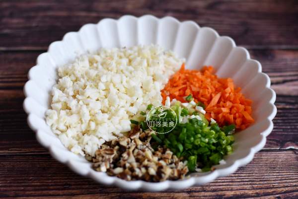 Củ năng, cà rốt, nấm hương, hành lá băm nhỏ. Nếu không có củ năng, có thể thay thế bằng các nguyên liệu như khoai mỡ, củ sen, ngô, đậu Hà Lan.