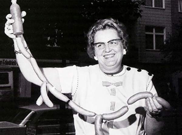 Heuwer (ảnh) bắt đầu bán món ăn nhẹ giá rẻ nhưng lại khiến thực khách no bụng này ở một quầy hàng trên phố, tại quận Charlottenburg của Berlin. Đây là nơi mà thời kỳ đó tập trung nhiều công nhân xây dựng. Heuwer sau đó được cấp bằng sáng chế cho món nước sốt Chillup của mình vào năm 1951. Vào thời kỳ hoàng kim, quầy hàng của bà bán 10.000 suất ăn mỗi tuần. Sau đó, bà mở một nhà hàng nhỏ và đóng cửa vào năm 1974. Ảnh: Emma